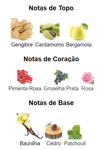 🔥 Coração complexo: Pimenta rosa, groselha preta e rosa equilibram frescor e profundidade, trazendo personalidade e charme à fragrância.